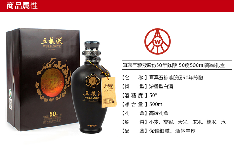 五粮液产年份酒50年陶瓶500ml五十年份酒年份五粮液